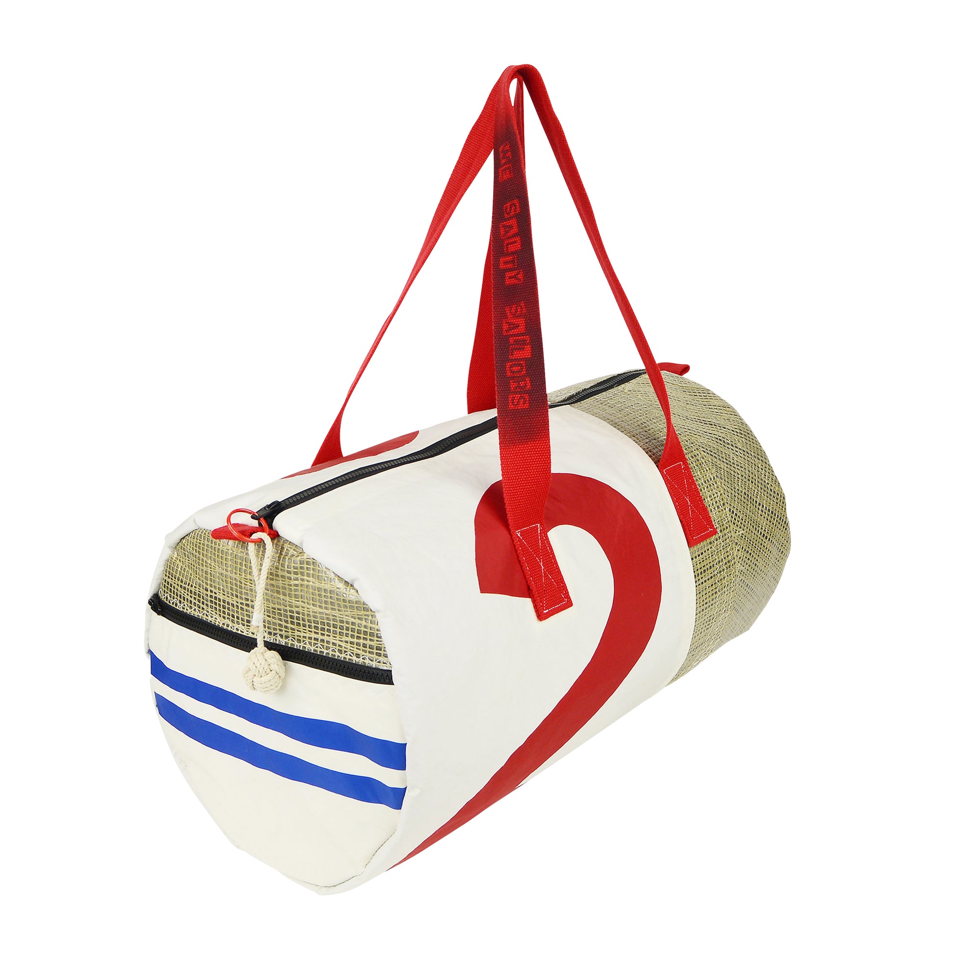 Duffel #2 is sewn from upcycled kevlar and dacron sails and can pack about 40 litres of your gear. The lining is hardy and waterproof, fully.