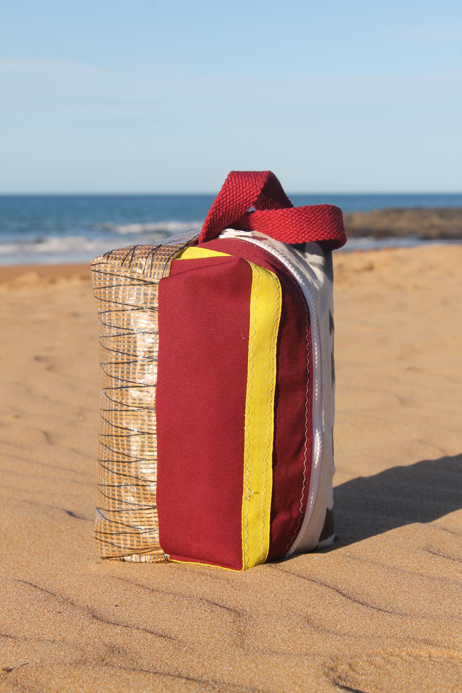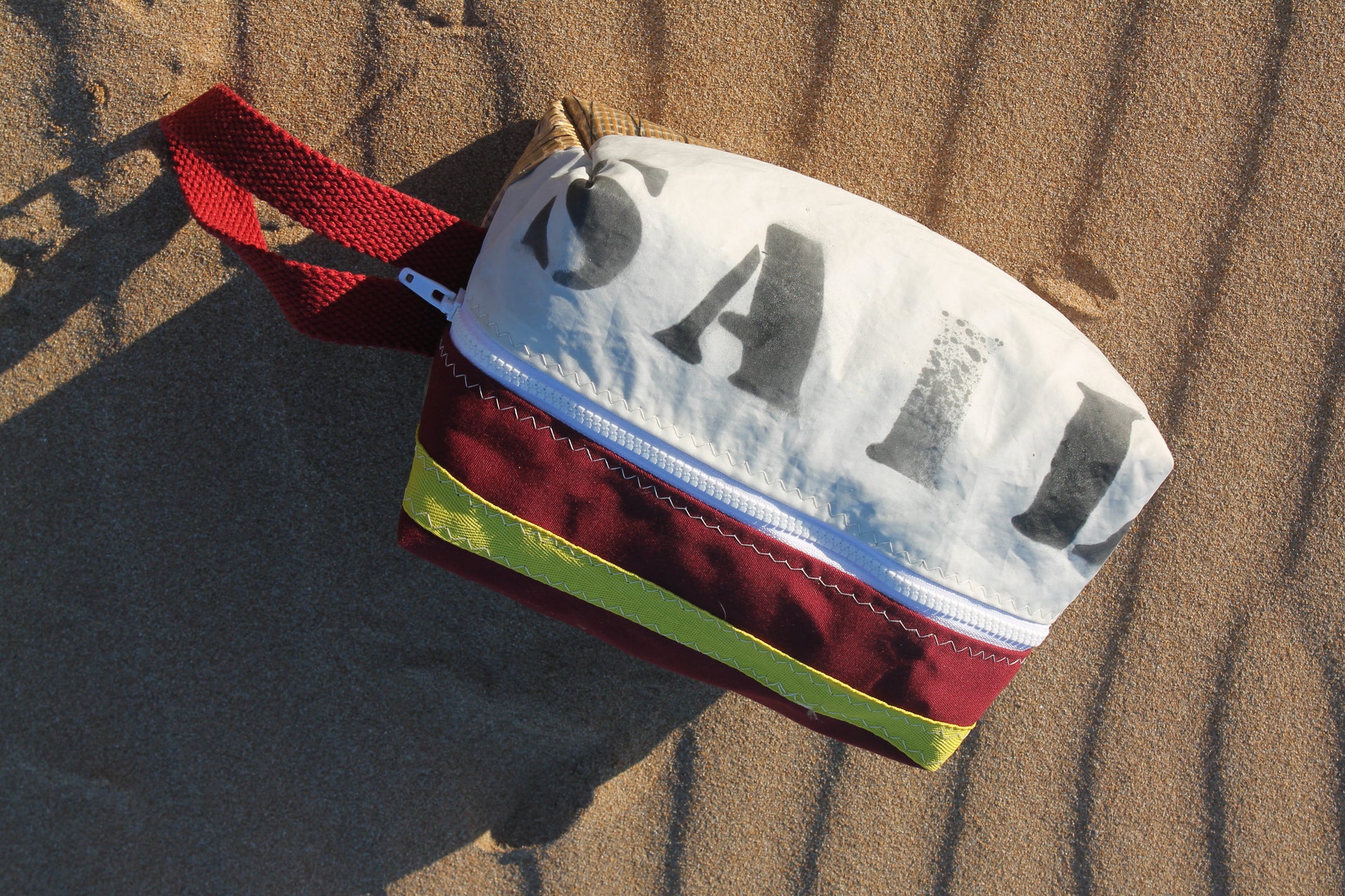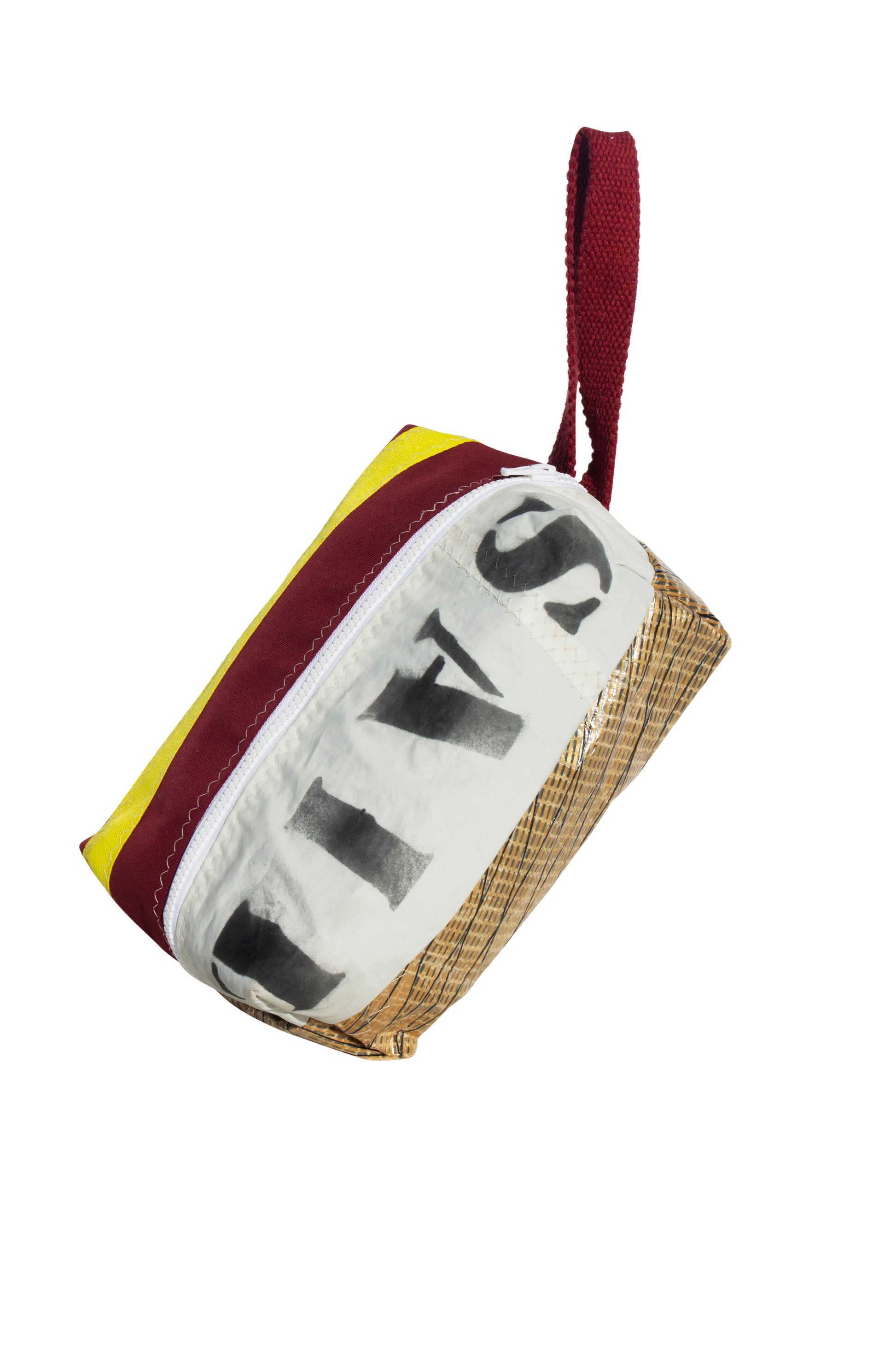 The Sail Toiletry Bag is sewn from up-cycled kevlar and dacron sails. The lining is hardy and waterproof, fully.